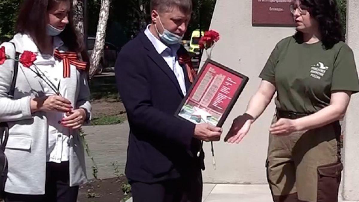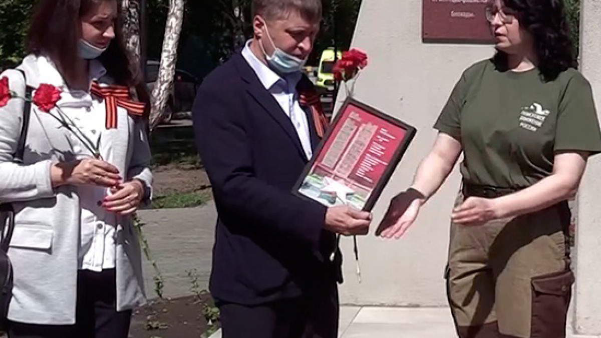 Торжественная передача медальона погибшего красноармейца прошла на Ленинградской аллее у памятника, посвящённому снятию блокады.