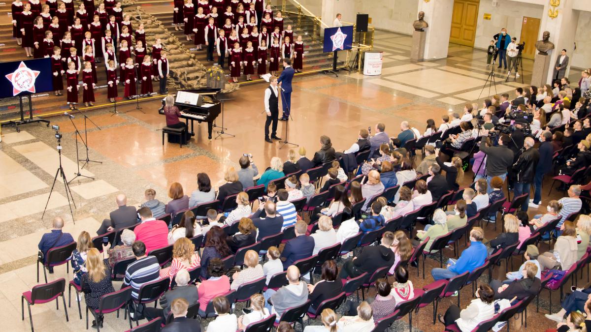 В концерте прозвучали произведения о Великой Отечественной войне в исполнении солиста крупнейших отечественных и зарубежных музыкальных коллективов, музыкального эксперта на телеканале «Россия-1» Михаила Гаврилова и Большого детского хора имени В.С. Попова.