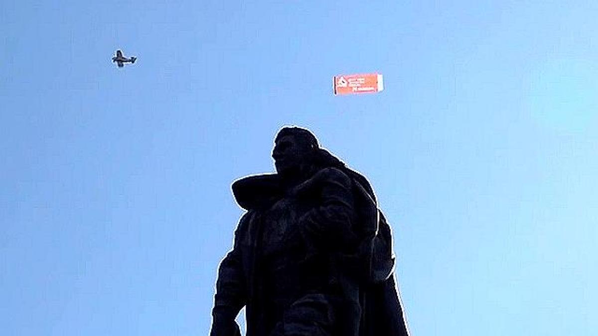 В Германии на символе Берлина Бранденбургских воротах утром появилось слово «спасибо» на русском языке, а днем сотни человек, собравшиеся в Трептов-парке у памятника Воину-Освободителю могли увидеть в небе копию знамени 150-й Идрицкой стрелковой дивизии, 30 апреля 1945 года водруженного над тогдашним символом Германии рейхстаге. Знаменем Победителей также приветствовали героев войны активисты Бессмертного полка Италии в Риме.