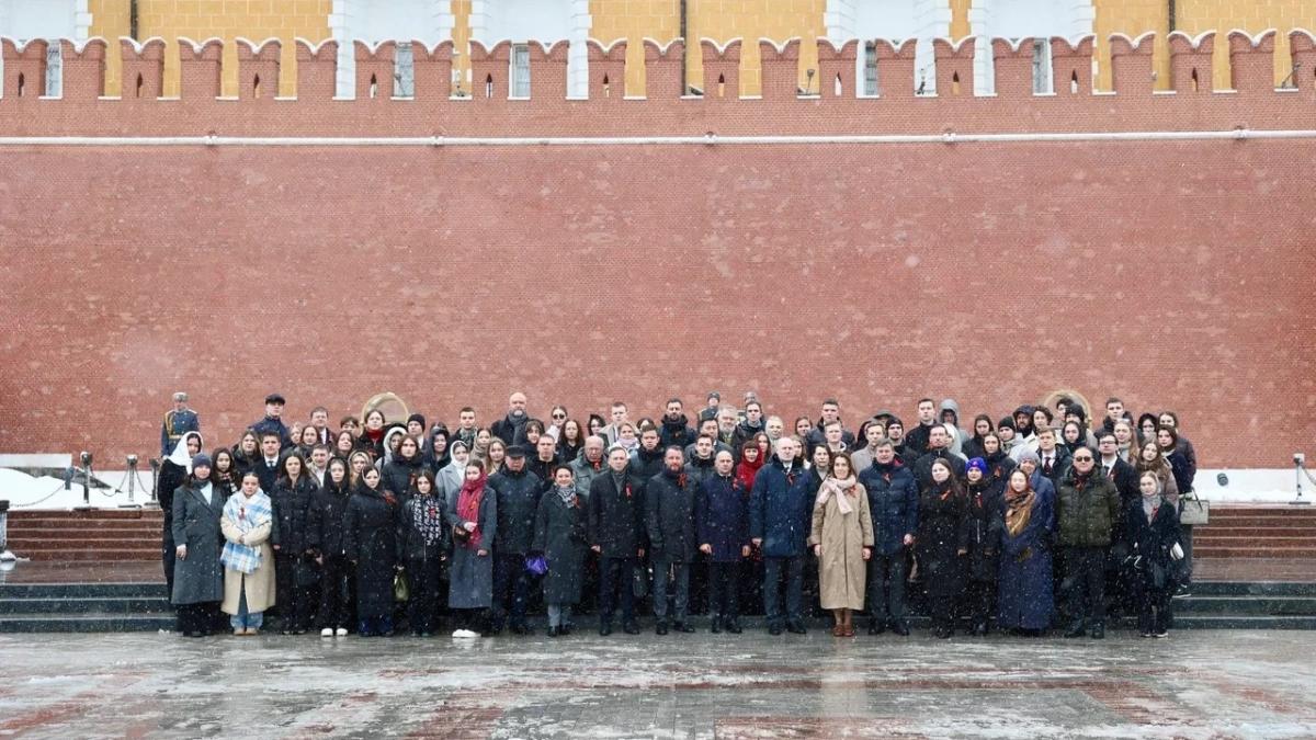 Торжественные мероприятия начались с возложения цветов к Могиле Неизвестного Солдата у Кремлёвской стены в Александровском саду. Замминистра науки и высшего образования Ольга Петрова, Герой России, гвардии капитан, участник федеральной программы «Время героев» Илья Споняков, руководитель Исполкома ООД «Бессмертный полк России» Наталья Шадрина, ректор Алексей Комиссаров, а также студенты и сотрудники Академии почтили память павших в годы Великой Отечественной войны.