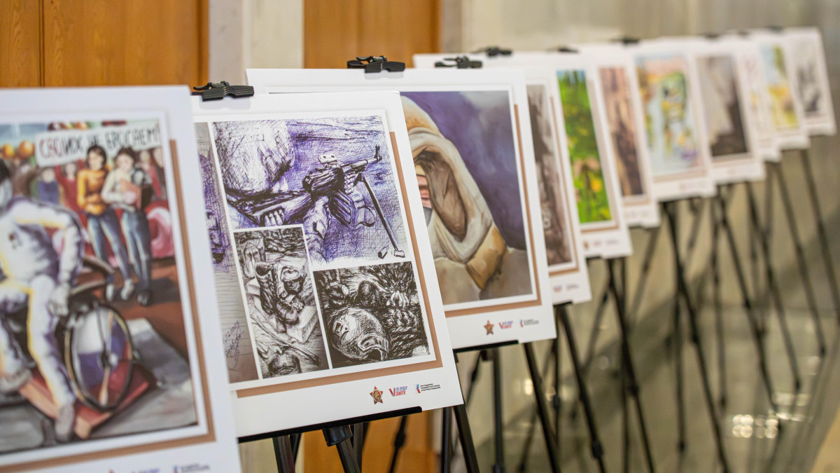 Перед концертом в холле музея для гостей была подготовлена выставка «По праву памяти», посвященная специальной военной операции и её героям. В выставку вошли 30 лучших рисунков, картин и зарисовок, которые на одноименный творческий конкурс Бессмертного полка России прислали тысячи участников СВО, их родственников и близких со всей России.