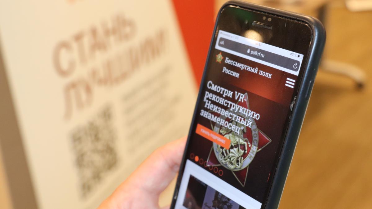 Участники церемонии открытия фотовыставки также смогли посмотреть VR-реконструкцию «Неизвестный знаменосец», которое дает возможность погрузиться в события 1945 года и своими руками установить Знамя Победы.
