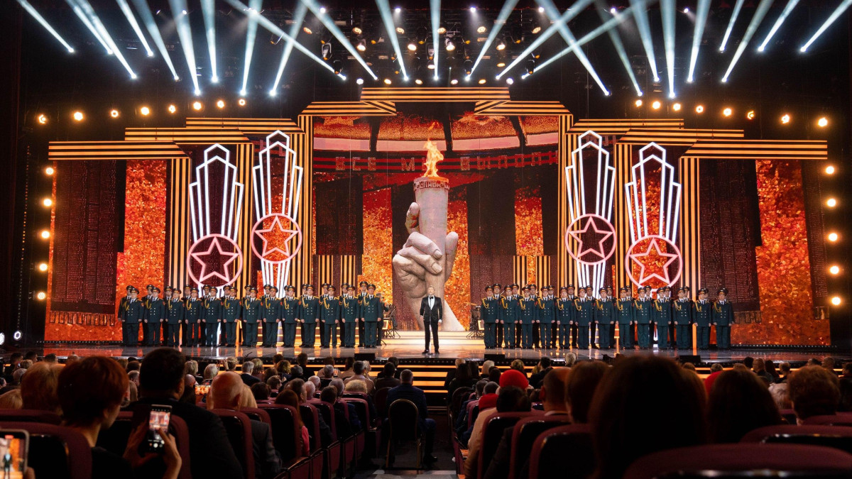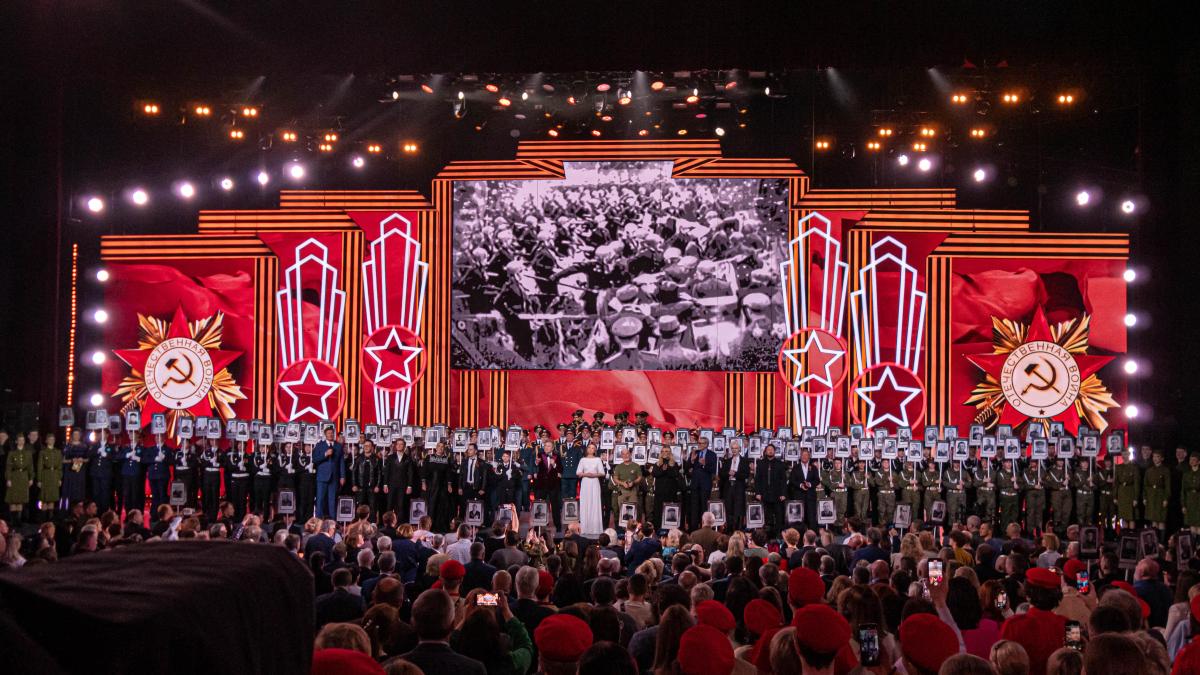 На концерте в исполнении народных и заслуженных артистов России, ансамблей и хоров прозвучат самые яркие песни военных лет, которые стали символами силы и духовного единства во время Великой Отечественной войны. Зрителями Большого праздничного концерта станут ветераны Великой Отечественной войны, Герои России и Советского Союза, участники специальной военной операции, военнослужащие и члены их семей, а также представители общественных организаций. Телеверсия концерта выйдет 9 мая на канале «Россия 1».