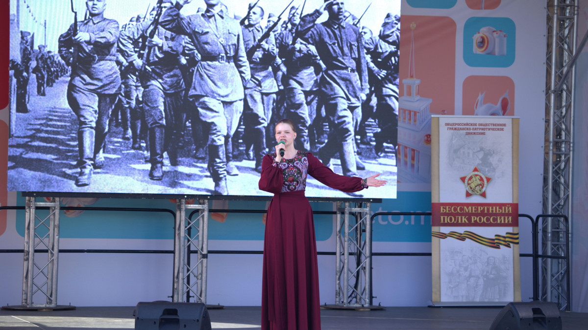 С песнями военных лет и современными произведениями выступили рэпер Александр Степанов (ST), заслуженные артисты Российской Федерации Сергей Куприк и Анна Ольхова, экс-солист группы «Белый орел» Леонид Лютвинский, лауреат Государственной премии России Ольга Будина, ансамбль ветеранов Президентского - Кремлевского полка «Оптимисты». Все присутствующие, захваченной сильными чувствами, подпевали популярным актерам.