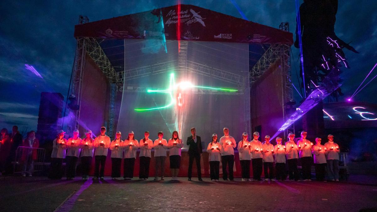 голоса Бессмертного полка России Михаила Гаврилова. Под слова великого Расула Гамзатова журавли «пролетели» над мемориалом в лазерном шоу и нашли покой на памятнике – Солдате-Победителе. После концерта в память о защитниках Родины на мемориале зажглись свечи и лампады как знак нашего преклонения перед подвигом наших солдат.