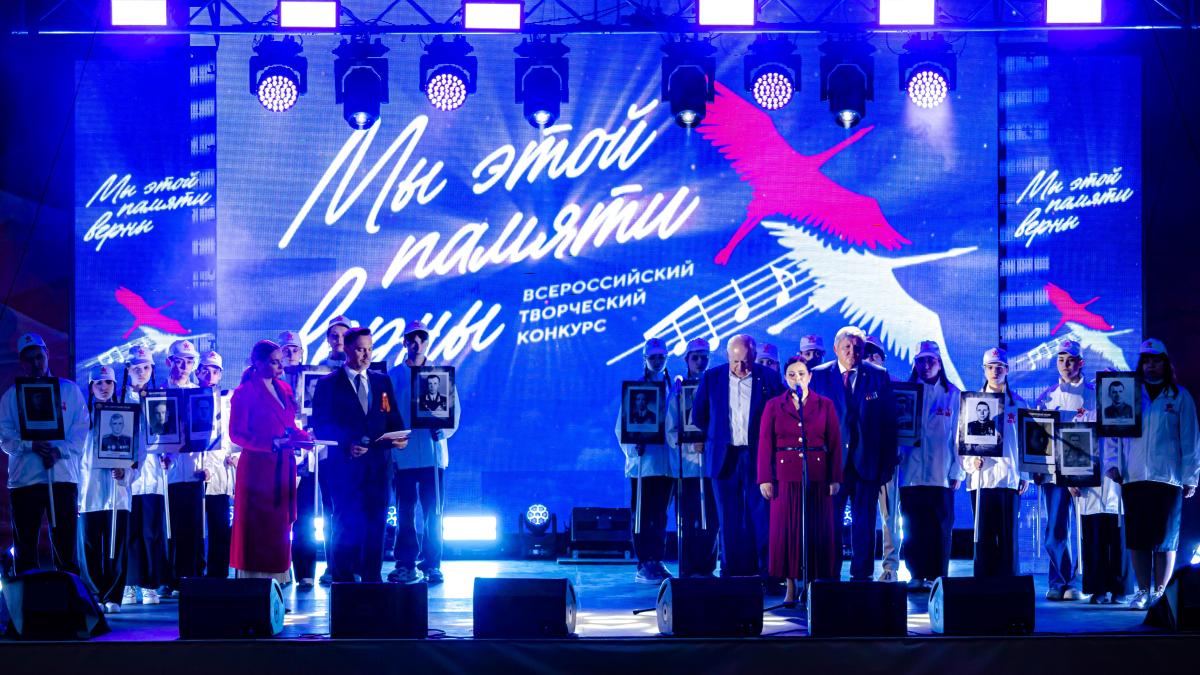 Концертную программу открыли победители творческих конкурсов Бессмертного полка России, представившие на суд зрителей свои произведения в память о защитниках Отечества разных эпох. Они посвятили свои песни всем тем, кто шёл на подвиг 80 лет назад, тем, кто продолжает их дело сегодня, кто отстоял нашу Родину.