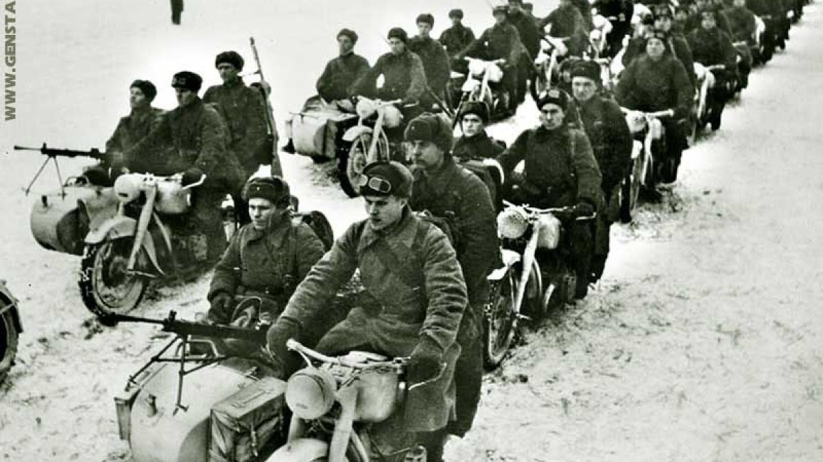 В книге «Мотоцикл в армии», выпущенной Наркоматом обороны в 1936 году, сказано, что «мотоциклетные части имеют преимущества перед конницей, поскольку он весьма поворотлив, мал, его легко маскировать и хранить, хотя конница и обладает большей гибкостью маневрирования. Правда, первые мотоциклетные части в Красной Армии появились лишь в феврале 1940 года. Причина была проста – отсутствие мотоциклов. За весь 1940 год в стране было выпущено лишь две с половиной тысячи мотоциклов, и, к примеру, 2-й мотоциклетный полк 8-го механизированного корпуса к июлю 1941 года вообще не имел мотоциклов. При этом в вермахте имелось почти 90 тысяч мотоциклов, из них на советской границе было сосредоточено 30 тысяч этих «боевых машин». Тем не менее, на основе немецкого БМВ советские заводы смогли наладить выпуск отечественного мотоцикла М-72, за годы Великой Отечественной войны произведя почти 14 тысяч таких машин. Существенную помощь оказали и американские «Харлей Дэвидсоны» и «Индианы», английские «Велосет» и «Матчлесс, присланные по ленд-лизу. Таких было более 30 тысяч штук. Мотоциклы официально относились к бронетехнике - трехколесные машины оборудовались под станковый пулемет, на руле мог крепиться ППШ, а на коляске - противотанковое ружье и даже мощный огнемет. А когда оружия недоставало, выручала смекалка. Так, 15 декабря 1941 года у деревни Першутино Клинского района Московской области бойцы 46-го отдельного мотоциклетного полка смогли остановить колонну из 26-ти немецких танков. Выскакивая на высокой скорости из леса, мотоциклы с красноармейцем, привязанным к коляске спиной к водителю, забрасывали вражеские машины гранатами. Шоссе Клин-Волоколамск оказалось заблокировано сожженными немецкими танками, и мотоциклисты смогли дождаться подкрепления, не дав врагу прорваться в Клин. Правда, и потери полка были огромны – 150 бойцов и 220-ти.
