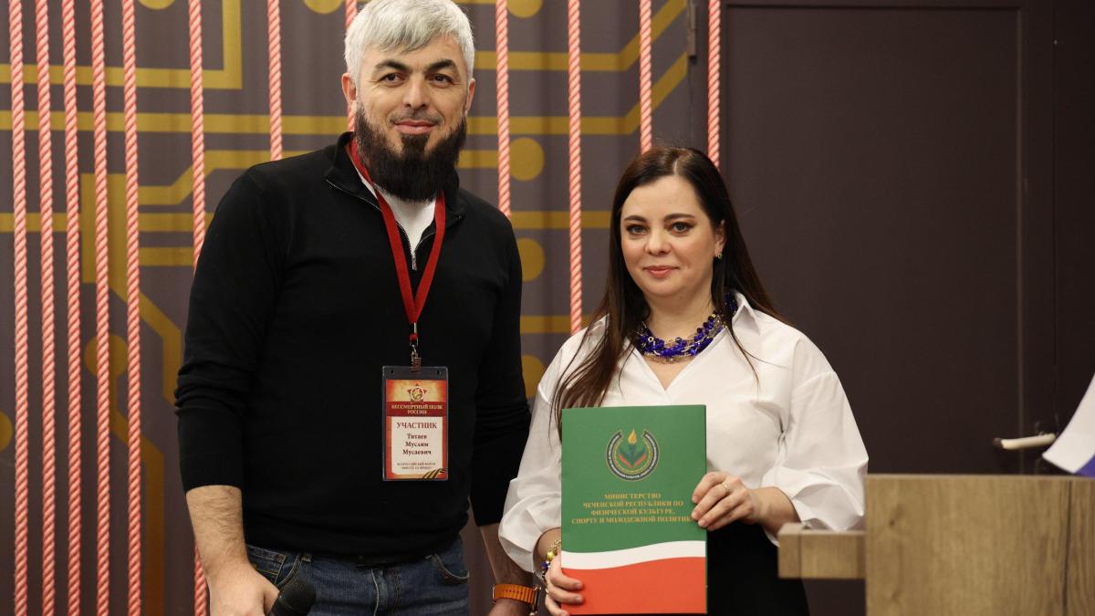 В рамках Всероссийского форума Бессмертного полка России руководитель штаба регионального отделения Движения в Чеченской Республике Муслим Титаев вручил Почетную грамоту Министра Чеченской Республики по физической культуре, спорту и молодежной политике Исы Магомед-Хабиевича Ибрагимова Руководителю Исполкома Бессмертного полка России Наталье Шадриной.