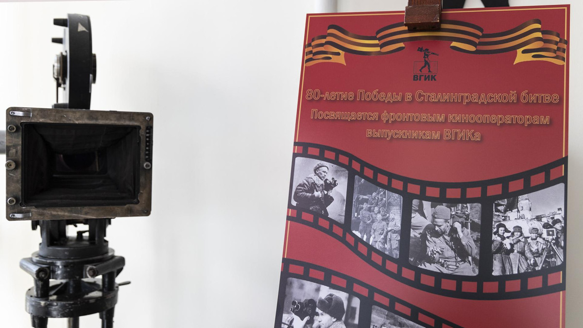 Во Всероссийском государственном институте кинематографии открылась фотовыставка, посвященная кинооператорам, оставившим для потомков бесценные кадры, снятые как на фронтах Великой Отечественной войны, так и запечатлевшие героические подвиги нашего народа в тылу.