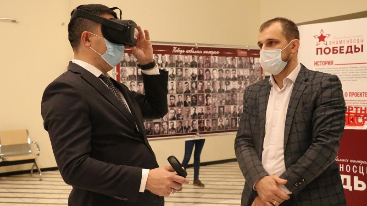 На площадку проекта «Знаменосцы Победы» пришли министр по делам молодежи РД Камил Саидов, руководитель Исполкома движения «Бессмертный полк России» Артем Хуторской, его первый заместитель Наталья Шадрина и другие. Они ознакомились с активностями на площадке, в том числе, с помощью VR-приложения увидели водружение Знамени Победы и смогли принять участие в этом процессе.