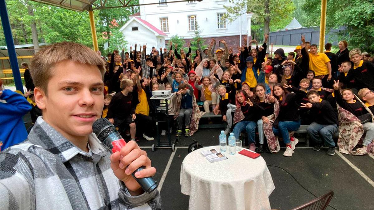В лагере актеру рассказали о жизни ребят в стенах лагеря: показали подготовку к соревнованиям по лапте, проведение уроков истории, постановку спектаклей и многое другое.