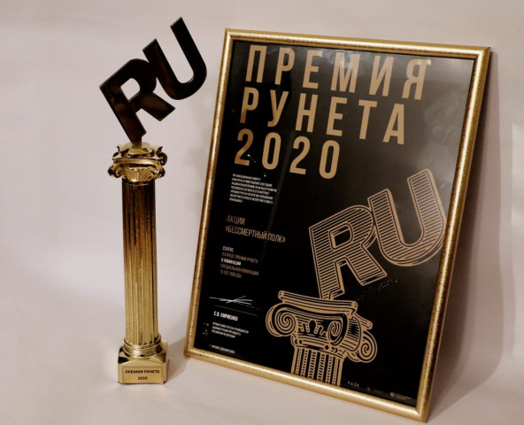 Проект Бессмертного полка России «Бессмертный полк онлайн» в числе победителей специальной номинации в «75 лет Победы» XVII Премии Рунета.