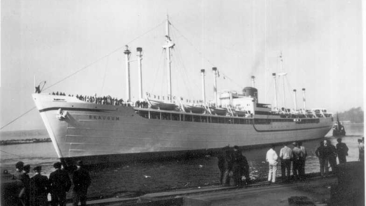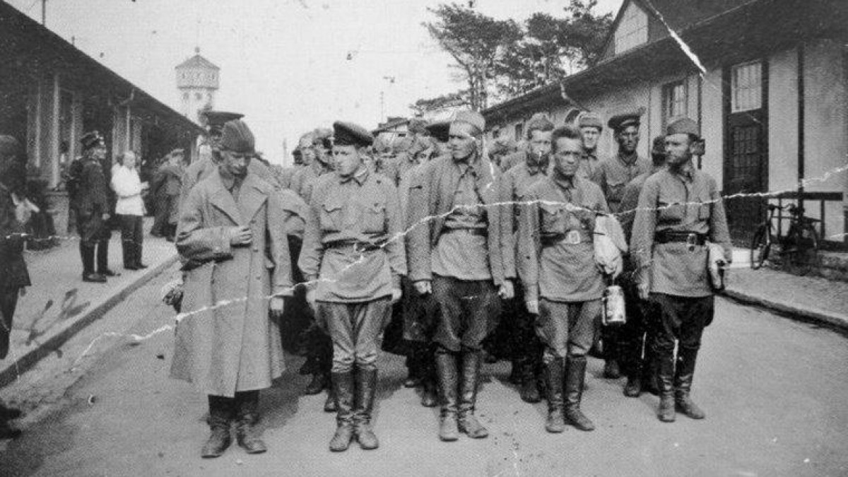 На фото: табличка мемориала у польского города Ольштынек; пленные командиры Красной армии в лагере в Хаммельсбурге; корабль Скаугум», перевозивший эмигрантов в Австралию.