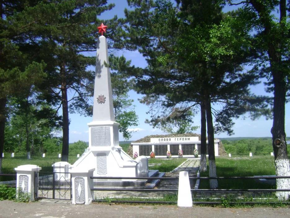 Монумент Славы на Мемориальном комплексе в городе Дальнереченске на берегу реки Уссури. Здесь покоятся останки более тысячи советских солдат, павших при штурме японской крепости Хатоу – сражения здесь продолжались 17 дней, до 25 августа 1945 года. А на другой стороне реки, в китайском городе Хотоу установлен такой же памятник советским воинам. Здесь захоронено 776 погибших красноармейцев.