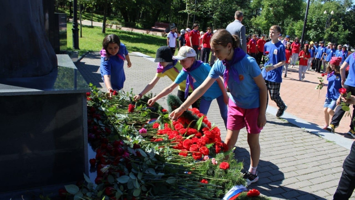 На Площади Славы в Южно-Сахалинске состоялась акция «Сыны Сахалина» в память о погибших военнослужащих в ходе специальной военной операции по денацификации территории Украины. Вместе с воспитанниками оздоровительно-досугового центра «Юбилейный» цветы к Вечному огню и скульптуре «Скорбящая мать» возложили руководитель штаба регионального отделения Бессмертного полка России в Сахалинской области Андрей Фугенфиров и руководитель Сахалинской региональной организации «Российский союз ветеранов войны в Афганистане» Станислав Калентьев, также являющийся членом Движения.