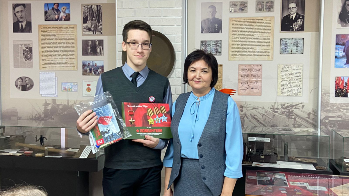 В музее школы N6 города Холмска Сахалинской области состоялась церемония передачи именного экземпляра седьмого тома альманаха «Победители» Никите Хухлину. В 2020 году он стал одним из победителей регионального этапа Всероссийского конкурса с международным участием «Правнуки победителей», организованного Бессмертным полком России.