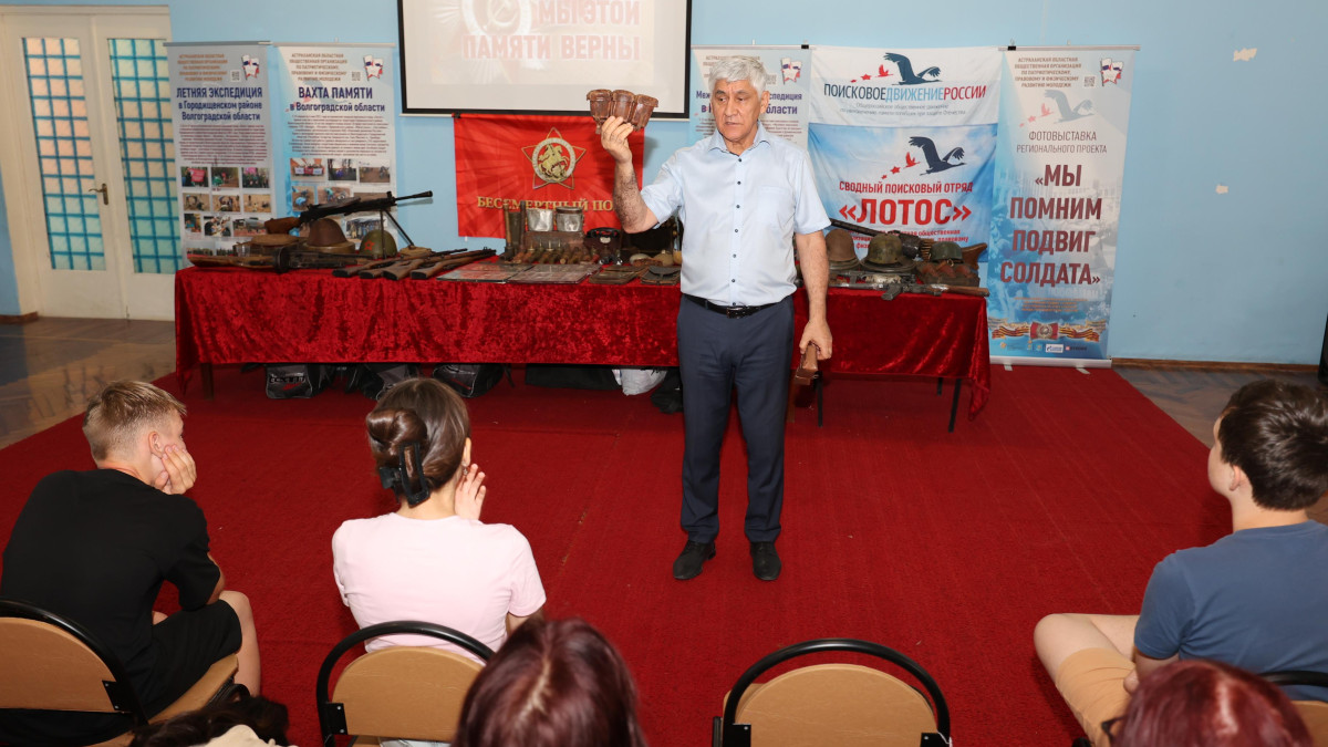 Историю оживил в своем рассказе руководитель штаба регионального отделения Бессмертного полка России Искандарбек Даиров. Ребята узнали о героизме предков в годы Великой Отечественной войны, мужестве воинов-интернационалистов, сражавшихся в Афганистане, отваге современных героев специальной военной операции, с восхищением слушали о самоотверженной работе астраханских поисковиков, возвращающих из небытия имена павших героев. В качестве иллюстраций к рассказу были представлены кадры кинохроники, видеоматериалы, рассказывающие о деятельности астраханских патриотов, и обращение движения «Бессмертный полк России» к юному поколению.