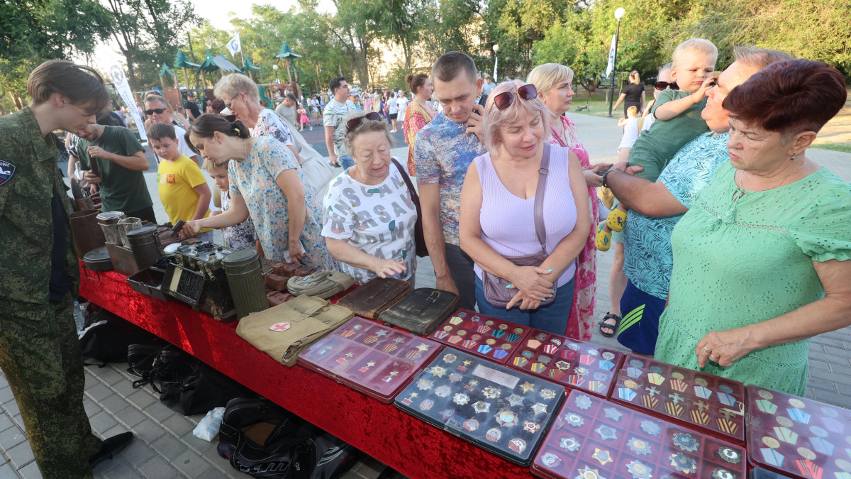 Особый интерес у ребят вызвала фотовыставка «Мы помним подвиг солдата», наглядно рассказывающая о работе астраханских поисковиков и активистов Бессмертного полка России, а также экспозиция советского и немецкого стрелкового оружия, военных артефактов и государственных наград Российской Империи, Советского Союза и Российской Федерации. Эту выставку также увидели жители и гости Астрахани в парке имени В.И. Ленина во время Фестиваля ухи на праздновании Дня Рыбака.