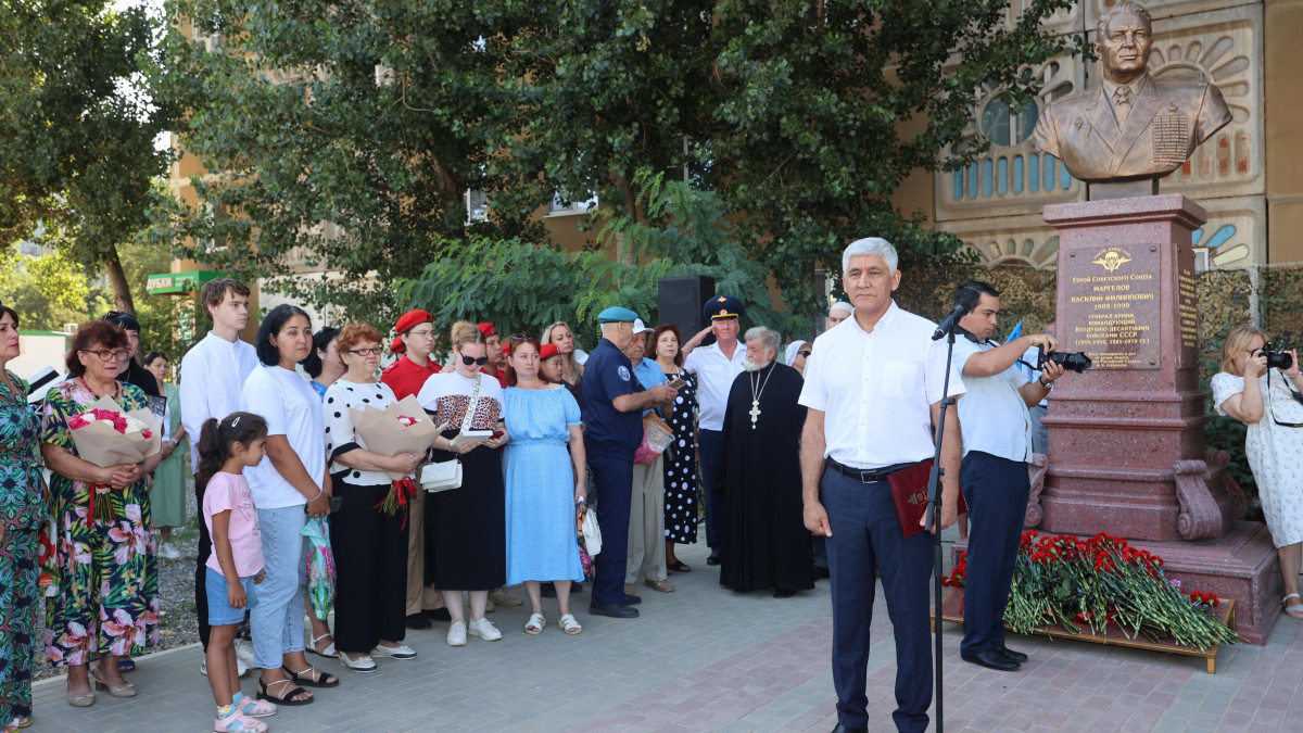 Все присутствующие почтили память погибших защитников Отечества минутой молчания и возложили к бюсту генерала армии Маргелова живые цветы. Для участников мероприятия была организована военная кухня.