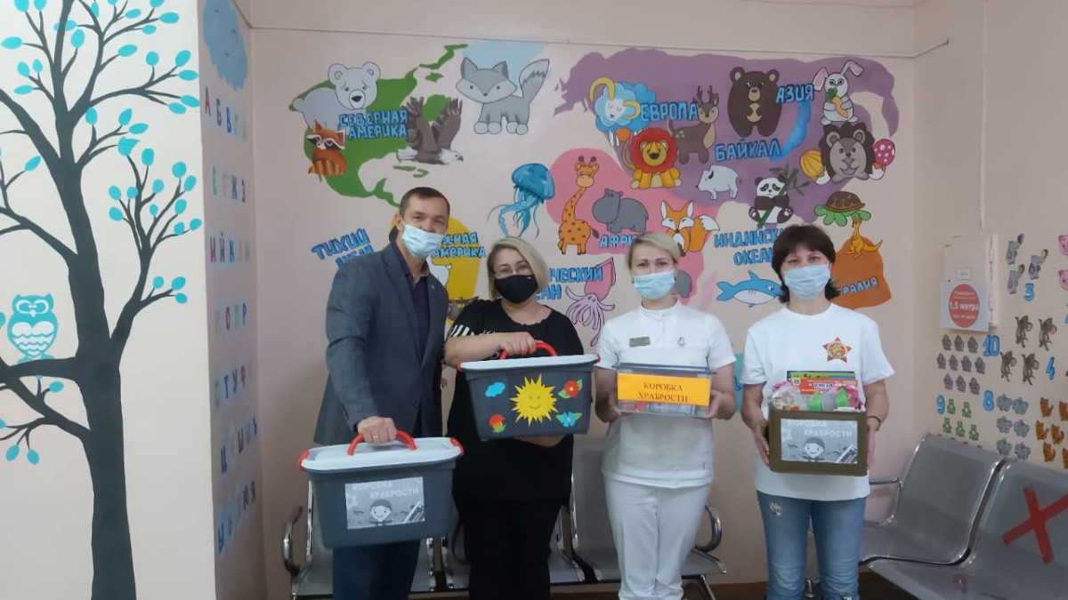 Во Всемирный день ребёнка активисты регионального отделения Бессмертного полка России в Иркутской области Светлана Минеева и Денис Ягодзинский посетили Ангарскую городскую детскую больницу. Но не с пустыми руками, а с «Коробками храбрости», которые были заполнены детскими игрушками, настольными играми и канцелярией – подарками жителей города Ангарска. Всё это предназначено детям, находящимся на длительном лечении в больнице.