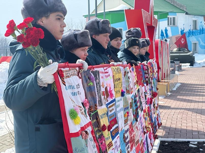 В Уренгое школьники вручную изготовили памятные платки о своих предках, героях Великой Отечественной войны и сшили их в один длинный «Платок Памяти». В этом году честь держать его во время митинга и возложения цветов к Вечному огню досталась ученикам 10 кадетского класса противоположной подготовки «Огнеборец». Каждый житель поселка после возложения проходил мимо «Платка памяти». Многие останавливаясь, внимательно рассматривая и глазами искали знакомые имена и фамилии, многие просто о чем-то задумывались. Взрослые фотографировали с ним маленьких детей и готовили им «Смотри, здесь про твоего прадедушку написано». «Платок памяти» держали в центре поселка как символ объединения поколений, как знак Великой Победы.