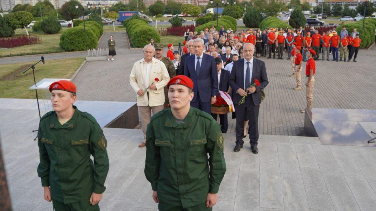 Перед восхождением участники возложили цветы к стеле «Владикавказ – город воинской славы».