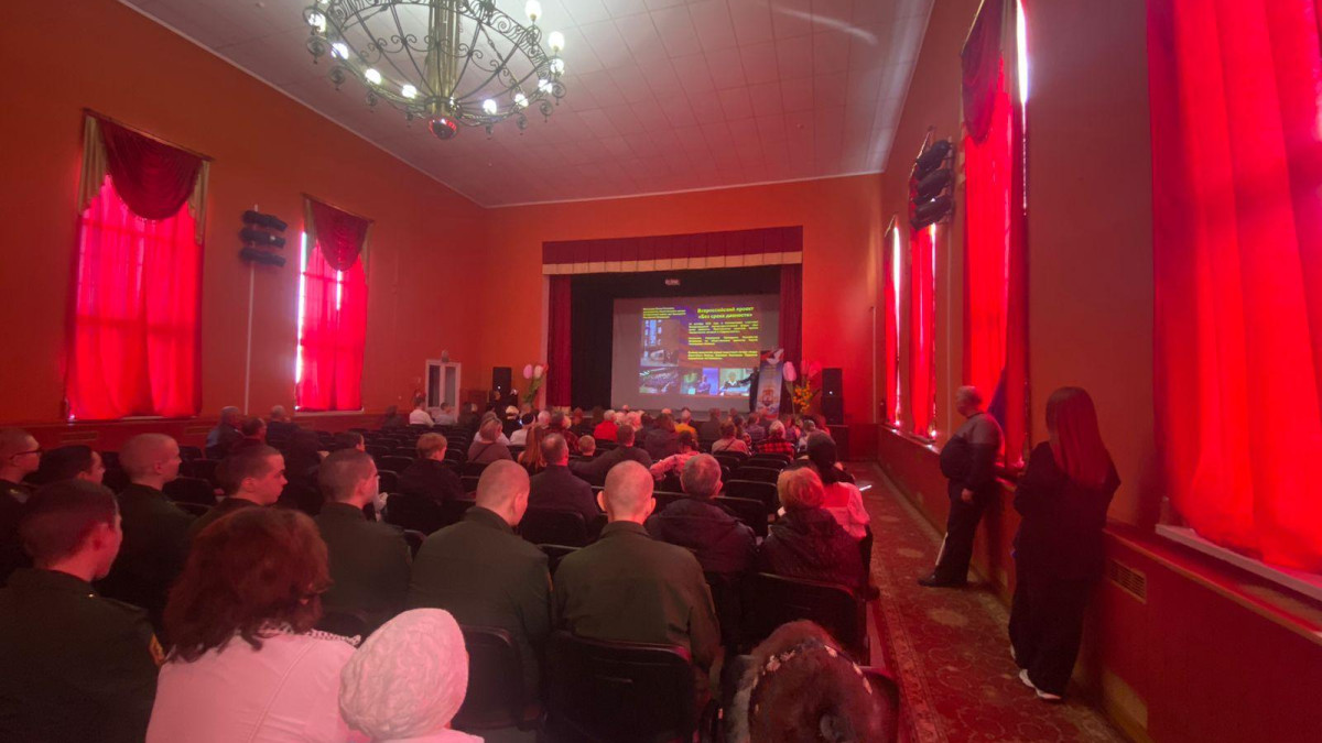 Затем в зале Дома культуры собрались ветераны, студенты, школьники, военнослужащие Черняховского гарнизона. Член штаба регионального отделения Движения, полковник полиции в отставке А.М. Щеглов представил фильм, созданный совместно с майором полиции О.А. Кузьма «Обвиняется нацизм. Без срока давности. Военные и нацистские преступления на территории Восточной Пруссии, ныне - Калининградской области», в которого зрители узнали историю нацизма, о местах концлагерей, тюрьмы, гестапо в городе Инстербурге, который ныне носит имя прославленного полководца Ивана Черняховского.