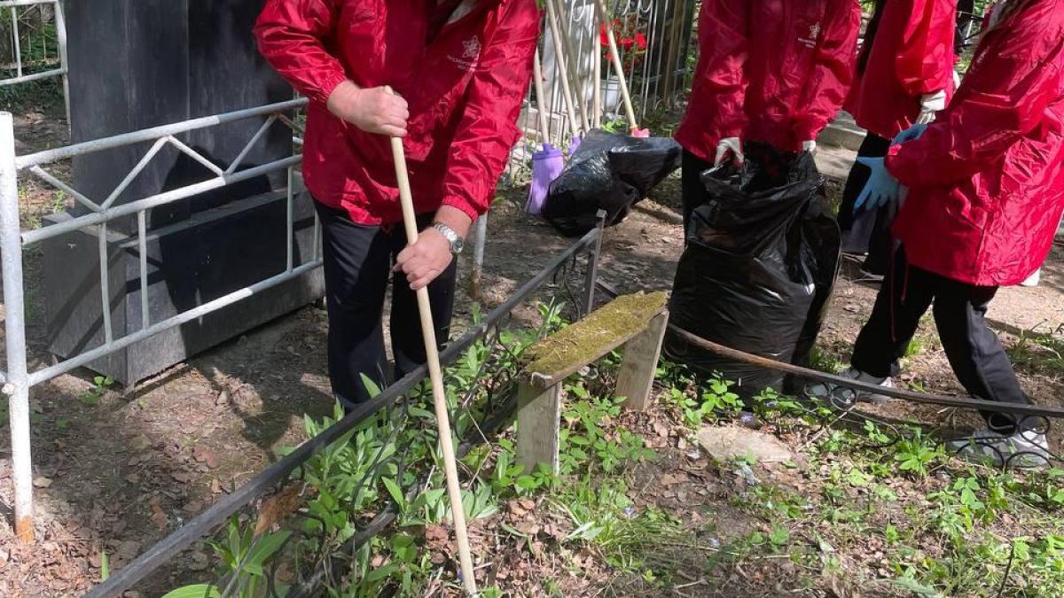 Добровольцы регионального отделения Бессмертного полка России в Пензенской области из школы №77 г. Пензы облагородили места захоронений участников Великой Отечественной войны на Ахунском кладбище.
