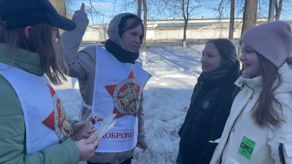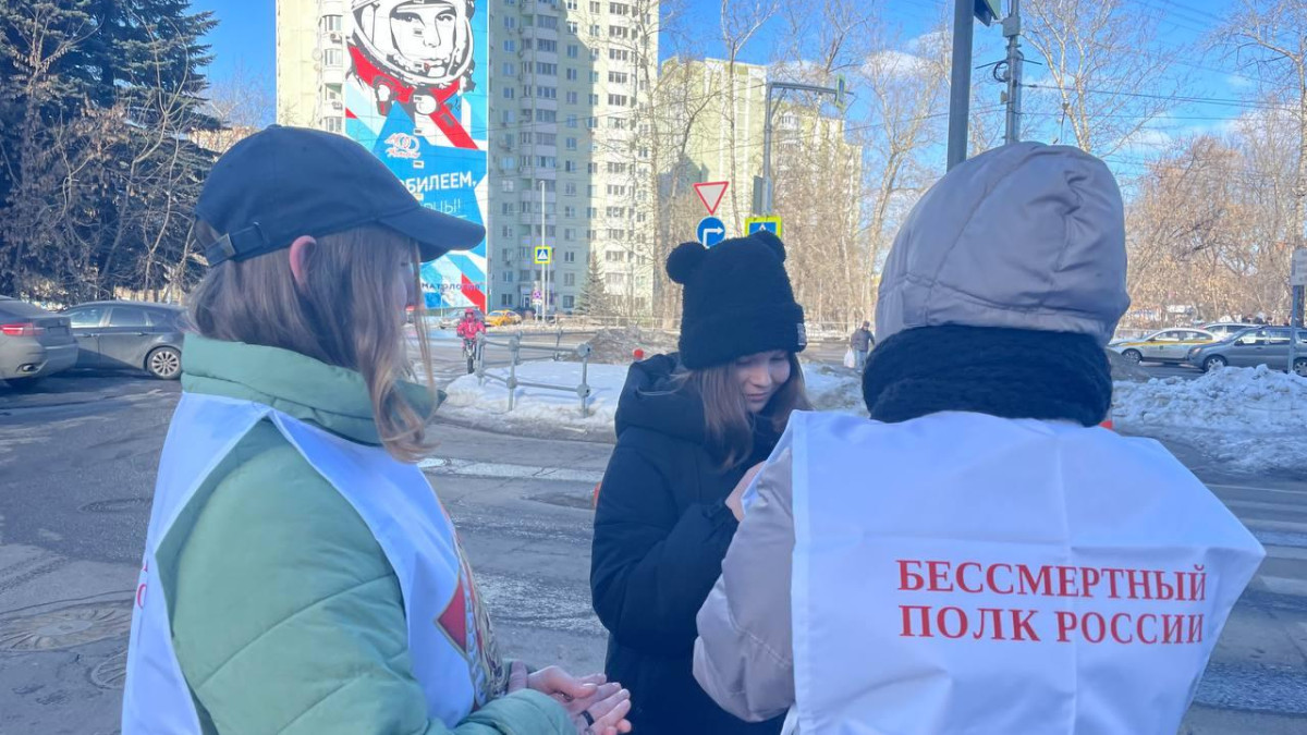 Юные добровольцы из ГБОУ 1793 вручали закладки для книг с описанием жизни Юрия Гагарина и важными датами - историческими событиями, произошедшими в Московской области в разные периоды отечественной истории. Маршрут проходил возле знаковых мест - памятного мурала Гагарину, двух корпусов училища, которое носит имя Героя Советского Союза, у Вечного огня. Ребята вместе с руководителем подмосковного исполкома Бессмертного полка России, учредителем АНО «Мой выбор» Марией Анисимовой возложили цветы к памятнику Главному космонавту Земли.