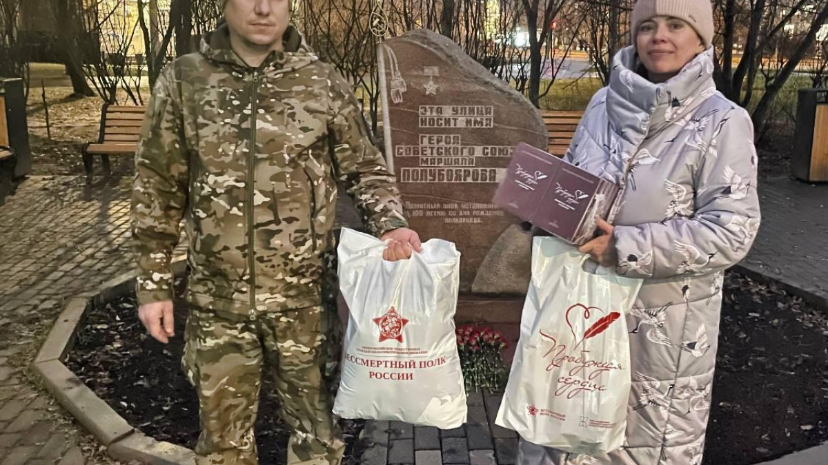 Новогодний «привет» от ребят получил 242 мотострелковый полк, который состоит из добровольцев из Подмосковья. Региональное отделение Бессмертного полка России в Московской области также передало ребятам в «Именной Подмосковный полк» книги со стихами о защитниках Отечества, которые написали жители страны в рамках конкурса «Пробуждая сердца», а также освещённые иконы. Осенью в рамках благотворительной программы «Добро», реализуемой АНО «Мой выбор», ребятам на фронт ушли медикаменты, также при поддержке детей, родителей и учителей школы 1793.