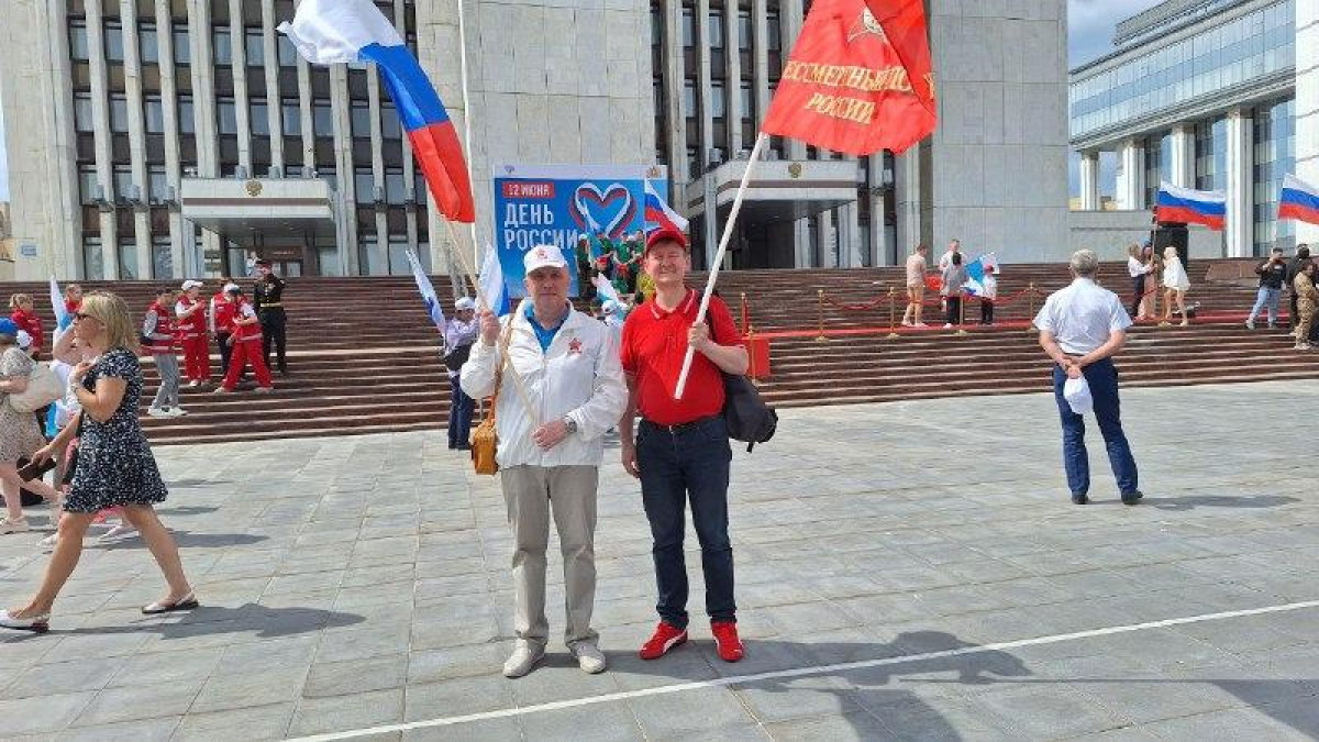 В Екатеринбурге День России наши однополчане встретили на церемонии торжественного построения патриотических, добровольческих, этнокультурных организаций и казачьих обществ, в ходе которого был поднят флаг России, а также вручен представителям общественных объединений.