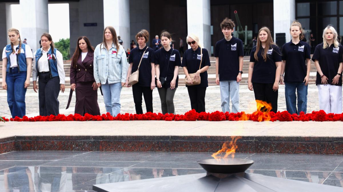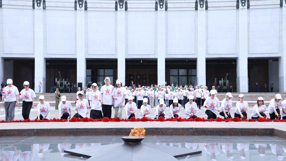 После поднятия флага все собравшиеся исполнили гимн России под аккомпанемент Военного образцового оркестра 154 отдельного комендантского Преображенского полка. Завершилась торжественная церемония у Вечного огня, где память героев почтили минутой молчания и возложили цветы к мемориалу.