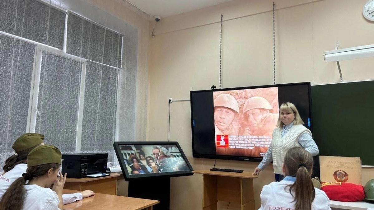 В деревне Чапаево в школьном музее прошел киноурок, после которого ученики посетили книжную выставку «Блокадной памяти страницы».