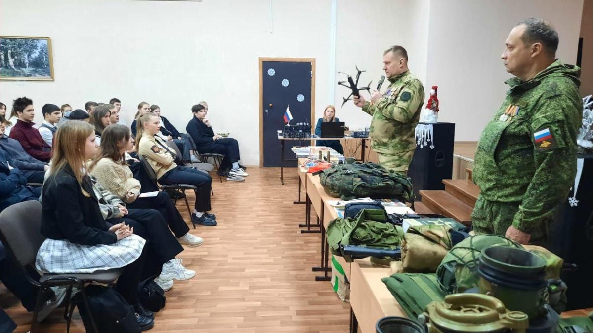 Андрей Бердников - выпускник этой школы. В родные стены он вернулся после участия в специальной военной операции, куда ушел добровольцем в состав казачьего отряда «Барс». Потомственный казак, он воспитывался в духе патриотизма и уважения к военной профессии, и когда его не мобилизовали по состоянию здоровья, он ушел добровольцем. Ребятам он рассказал о своем участии в СВО, о тех боевых задачах, которые стояли перед ним и его сослуживцами, и о том, как бойцы с ними справлялись.