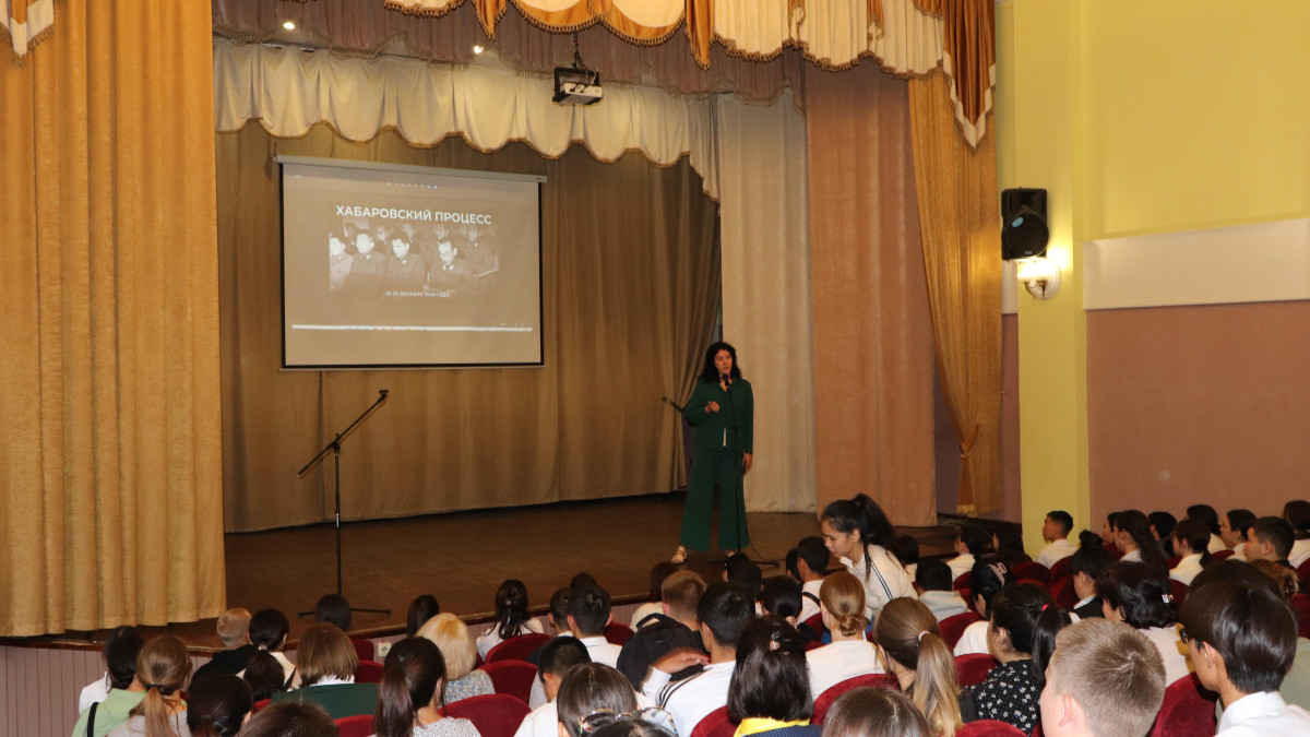 В Медицинском колледже Горно-Алтайска состоялся показ документального фильма «Хабаровский процесс. Лаборатории смерти». Перед просмотром фильма руководитель штаба регионального отделения «Бессмертный полк России» в Республике Алтай Анна Ковшарь рассказала о значимости фильма: «Хабаровский процесс менее известен, чем Нюрнбергский: мы не столь подробно знаем о японских военных преступлениях и вынесенных приговорах». А в завершении мероприятия призвала аудиторию обратиться к семейной памяти: «Может оказаться так, что кто-то из вас является потомком участника войны с Японией. Но даже если этого не было в вашей семейной истории, сегодня - лучший повод, чтобы вспомнить о своих ветеранах и поблагодарить их за Победу».