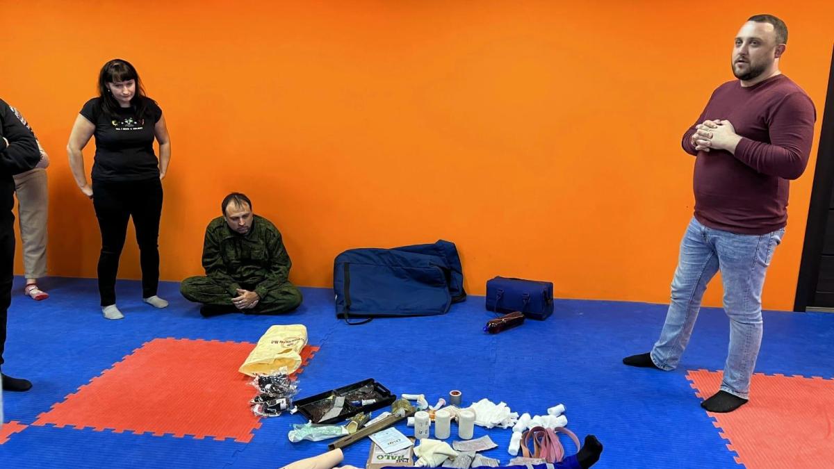 В Семейном развивающем центре «Лукоморье» города Семилуки Воронежской области региональное отделение Бессмертного полка России открыло бесплатные курсы для жителей по оказанию первой медицинской помощи. Занятия проводят заведующий учебно-методическим отделом Воронежского областного клинического центра медицины катастроф Артём Лавлинский и специалист по оказанию первой медицинской помощи в красной зоне, участник боевых действий с позывным «Альберт».