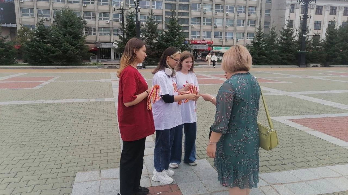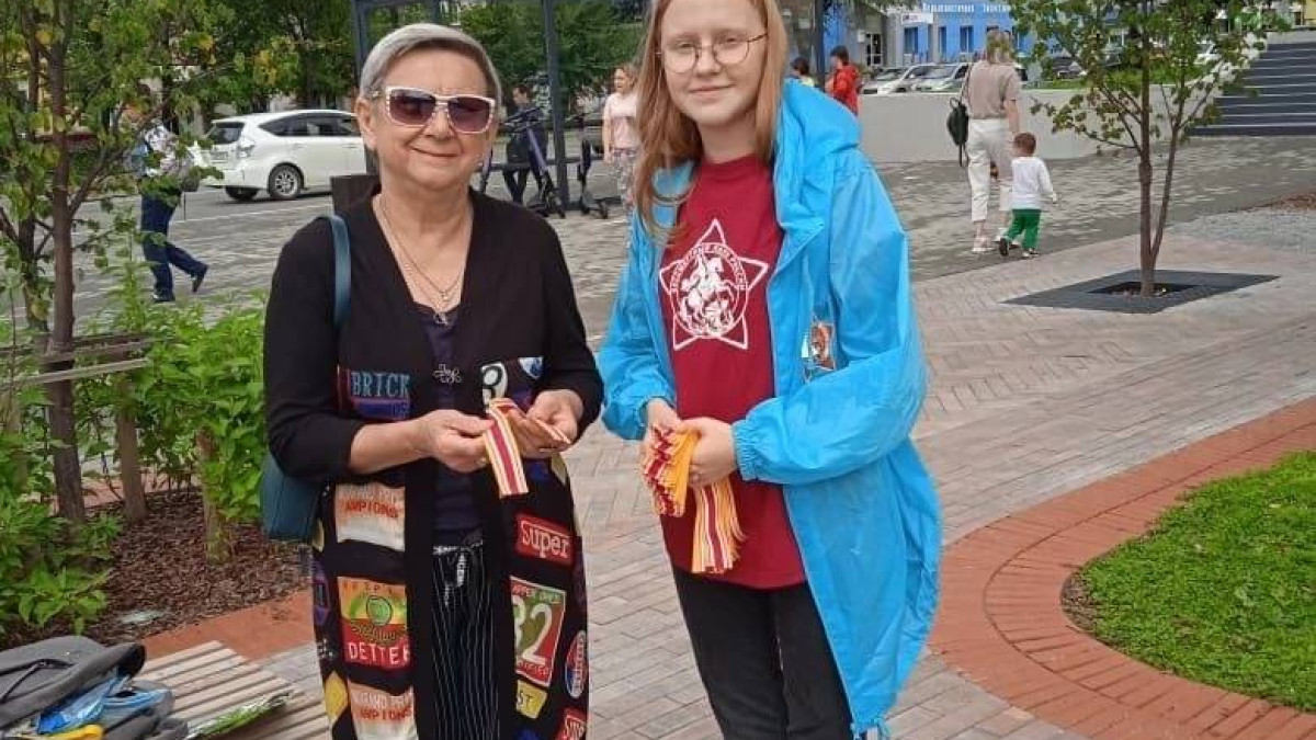Акция проходила на нескольких площадках, волонтёры раздавали жителям ленты, и, порой, горожане брали сразу несколько символов Победы, чтобы передать родным. По признанию многих, ленту такой расцветки они видят впервые.