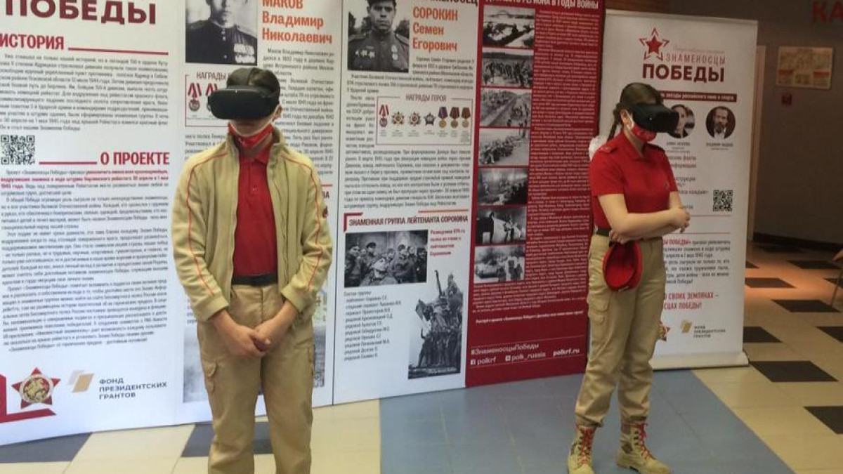 Участники торжественной церемонии водрузили виртуальные знамена Победы над Рейхстагом на выставке «Знаменосцы Победы», организованной региональным отделением Бессмертного полка России в Московской области, а также узнали о проекте "Рубеж Победы. Битва за Москву", который рассказывает о боевом и трудовом вкладе жителей округа в Великую Победу.