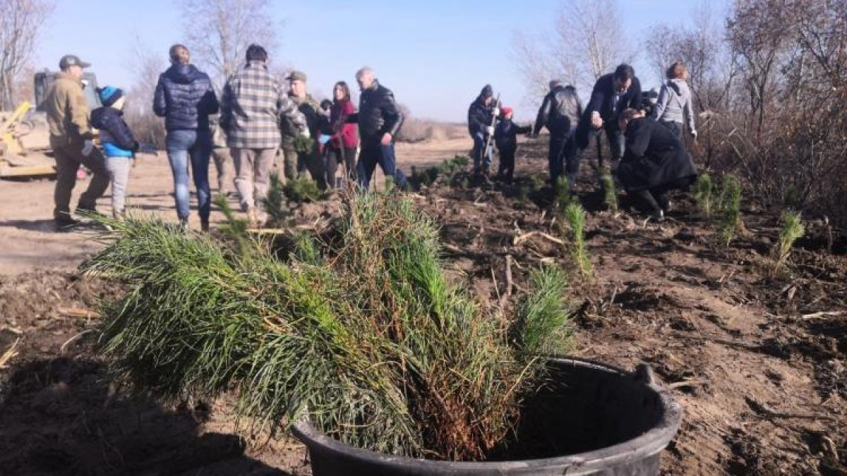 По замыслу организаторов акции всего здесь посадят 1418 молодых сосен и рябин - ровно столько дней продолжалась Великая Отечественная война.
