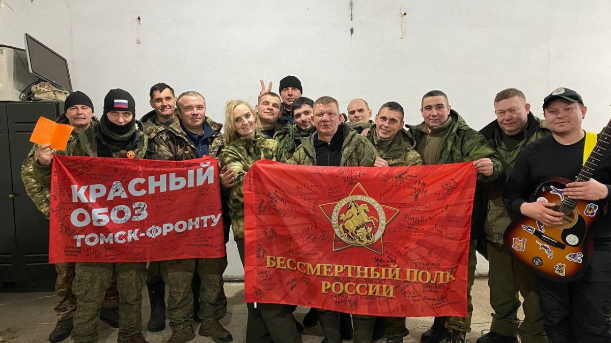 «80 лет назад земли Донбасса освобождала Томская 79-я стрелковая дивизия. Сегодня потомки героев Великой Отечественной снова встали на защиту Родины, Донбасса. И вместе с ними, плечом к плечу, сейчас стоит невидимое воинство - Бессмертный полк тех, кто, сражаясь за эту землю 80 лет назад, пал смертью храбрых, - рассказал Сергей Григорьев. - В генах наших воинов течет кровь героев Великой Отечественной, победивших фашизм. Так будет и сегодня. А в память об этих временах останется этот флаг Всероссийского общественного гражданско-патриотического движения «Бессмертный полк России», его Томского регионального отделения, с подписями наших воинов-сибиряков – участников СВО. Мы специально взяли его в нашу пятую поездку. Как память, как пример, как осознание, что за нашими спинами стоят наши предки-герои и поддерживают нас с небес. И этот флаг с подписями наших воинов мы передали сегодня нашему соратнику, коллеге, единомышленнику и большому другу - руководителю штаба регионального отделения Бессмертного полка России в Томской области Николаю Мозелю».