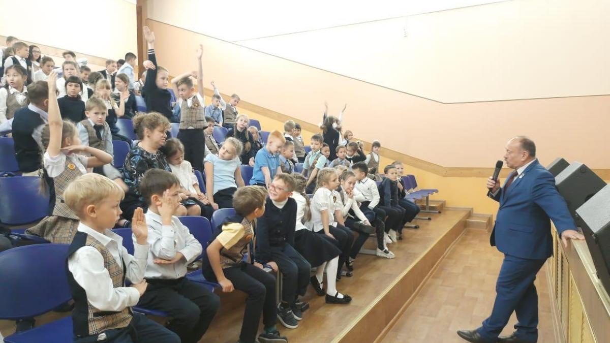В средней общеобразовательной школе №6 города Южно-Сахалинска руководитель штаба регионального отделения Бессмертного полка России в Сахалинской областной Андрей Фугенфиров поговорил с учащимися младших классов на тему «С чего начинается Родина?»