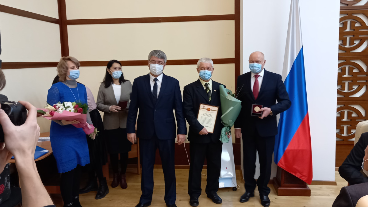 Высокая награда была вручена представителям регионального штаба Главой Республики Бурятия Алексеем Цыденовым и Главным федеральным инспектором по Республике Бурятия Сергеем Ромахиным.