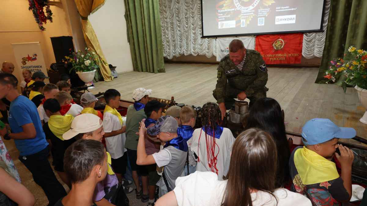 В Доме культуры города Харабали Астраханской области состоялся Урок мужества для участников патриотического слета «Мы-Zа!», проводимый в рамках регионального проекта «Мы помним подвиг солдата», который был организован на базе палаточного лагеря с дневным пребыванием детей и подростков. По приглашению комитета по делам культуры, молодёжи и спорта администрации Харабалинского района провел его руководитель штаба регионального отделения ООД «Бессмертный полк России» в Астраханской области Александр Даиров. Кроме ребят - участников слета в зале присутствовали поисковики, воспитанники социально-реабилитационного Цента «Вера» г. Харабали и его Сасыкольского филиала, а также ветераны, депутаты, представители администрации района. Как всегда очень ярко, убедительно, доходчиво Александр Александрович рассказывал ребятам и всем присутствующим о героях-астраханцах, о боевом пути 28-й армии, об Афганской войне, о подвиге детей-Героев Советского Союза в годы Великой Отечественной войны, о подвиге подростков Донбасса, которые с 2014 года вместе со ополченцами с оружием в руках встали на защиту своей земли от украинских неонацистов. В рамках Урока мужества была организована встреча с харабалинцем - ветераном боевых действий в Сирии, участником СВО Хамзиным Казыбеком Руслановичем. Никого не оставил равнодушным рассказ героя о мужестве наших солдат, о необходимости проведения специальной военной операции и достижения поставленных целей.