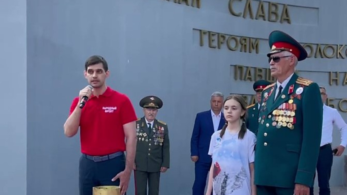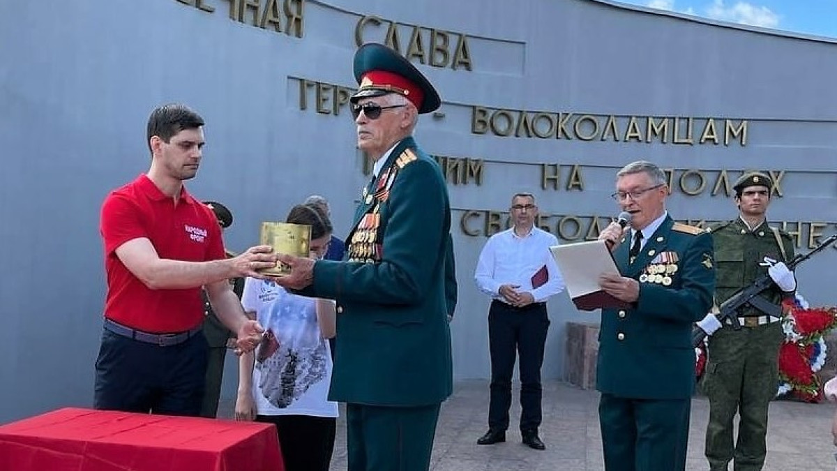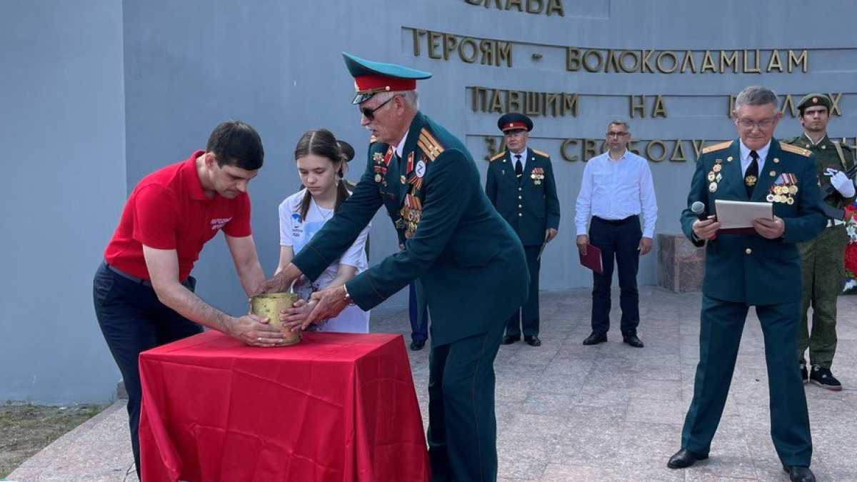 В канун Дня России член штаба президентского движения «Народный фронт» в Подмосковье, руководитель регионального отделения Бессмертного полка России Валерий Анисимов передал Совету ветеранов Волоколамска часть гильзы от отечественного зенитного ракетного - пушечного комплекса «Панцирь-СМ» с землей с освобожденных территорий Харьковской области.