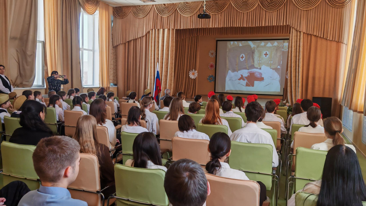 Участникам показали небольшой видеоролик об истории формирования медицинской службы Вооруженных сил со времен царской России и до наших дней. А экспертом на встрече стала Наталья Романова, награжденная медалью «от благодарного афганского народа» за службу в демократической республике Афганистан операционной сестрой. Наталья Петровна рассказала ребятам о том, как жил народ Афганистана в период войны и своей службе за рубежом: как лечили раненых, а также женщин и детей, которые шли с надеждой на белый флаг с красным крестом. В свою очередь школьники рассказали о своих прадедах - участниках Великой Отечественной войны и их военном пути, исполнили стихи и песни.