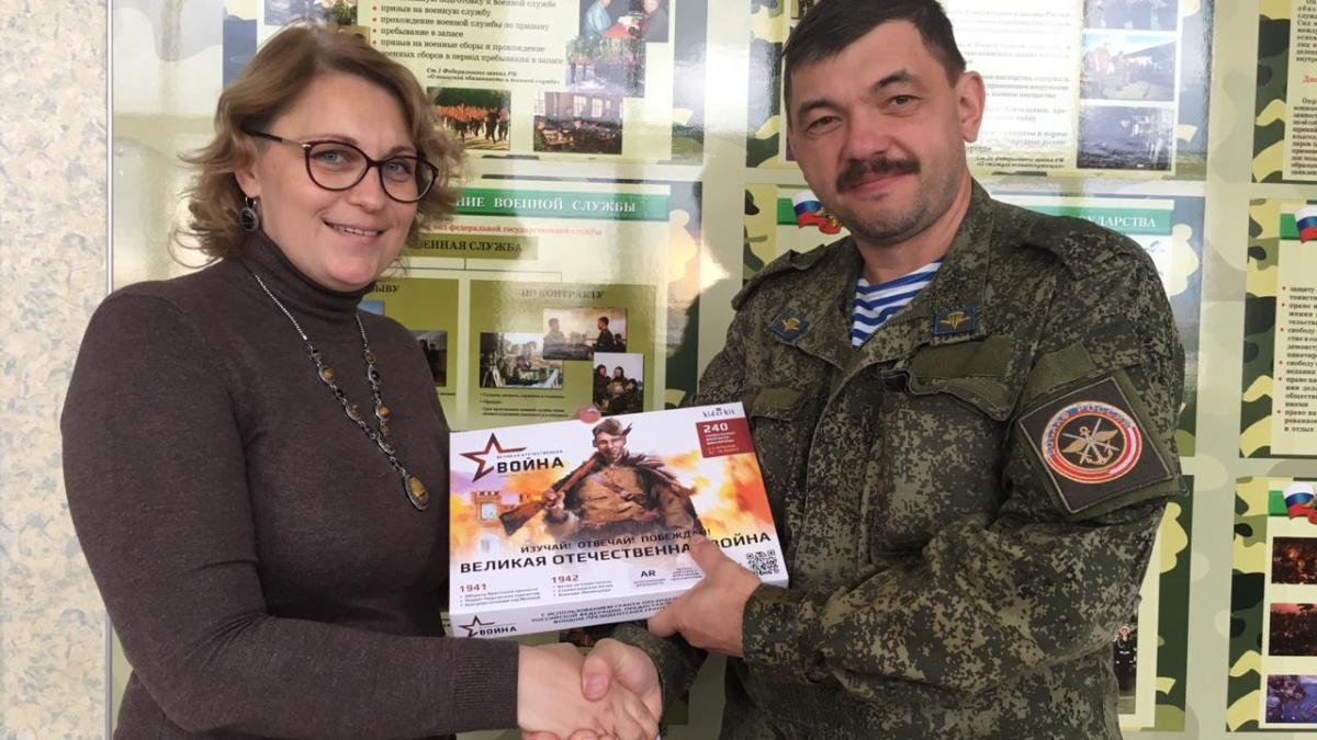 Руководитель регионального исполкома Бессмертного полка России в Новосибирской области Елена Хлыстова передала этот ценный подарок в ассоциацию военно-патриотических клубов десантного профиля Новосибирской области. Теперь у ребят появится возможность изучать историю в новом, интересном для подростков формате.