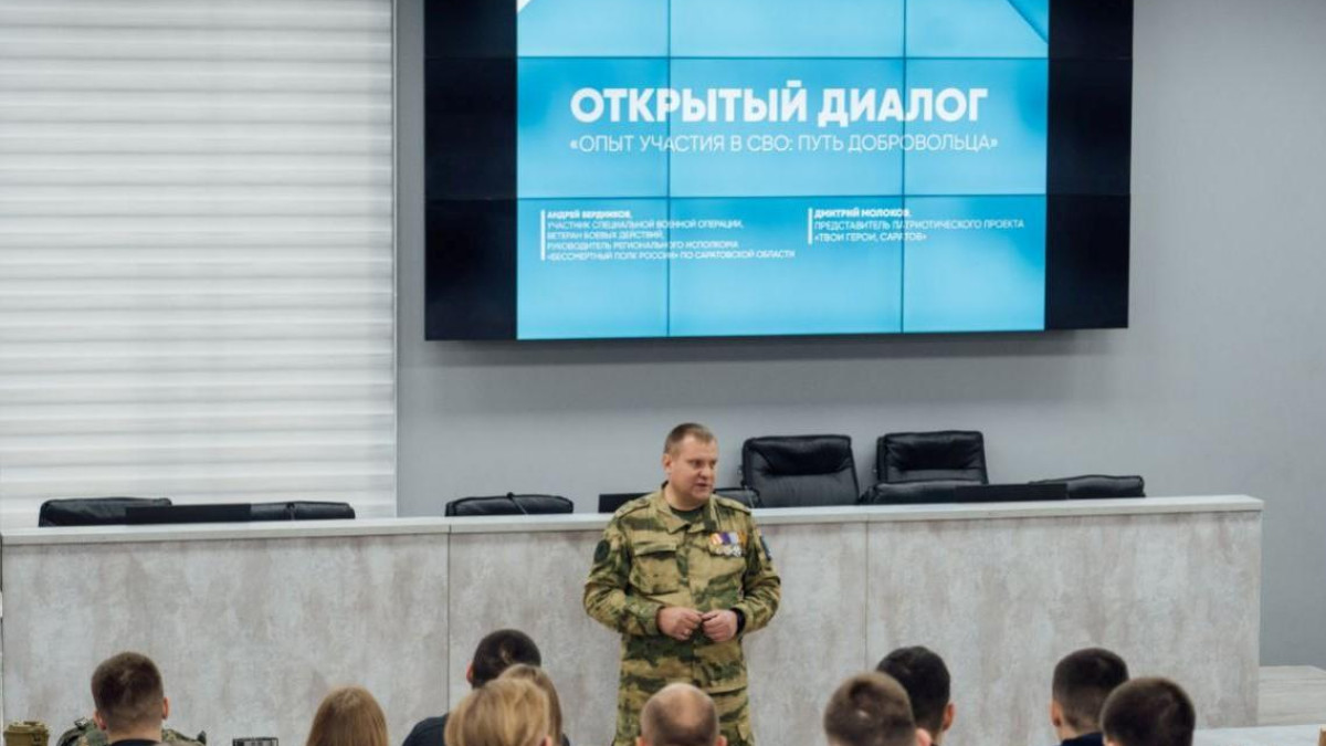 В Саратовской Государственной юридической академии состоялась встреча студентов с участником специальной военной операции, ветераном боевых действий, руководителем регионального исполкома Общероссийского общественного движения «Бессмертный полк России» по Саратовской области Андреем Бердниковым, только что избранным в состав Общественного совета при Саратовской областной Думе. Также во встрече участвовал представитель патриотического проекта «Твои герои, Саратов!» Дмитрий Молоков.