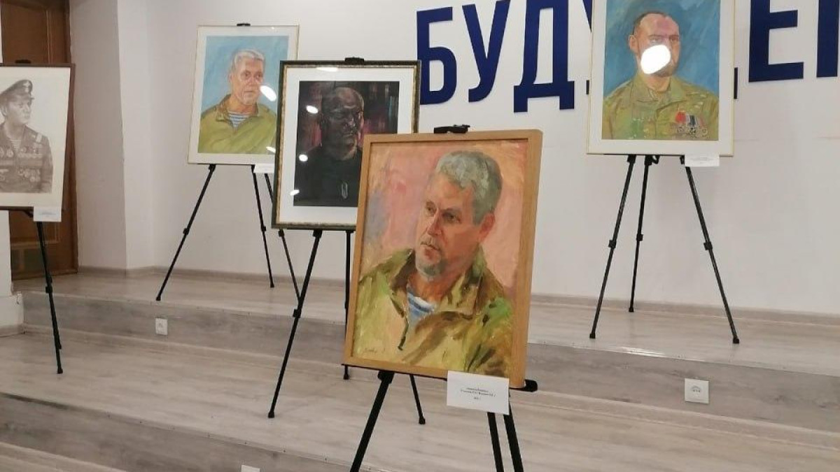В ходе встречи была представлена выставка портретов участников СВО, написанных новгородскими художниками.
