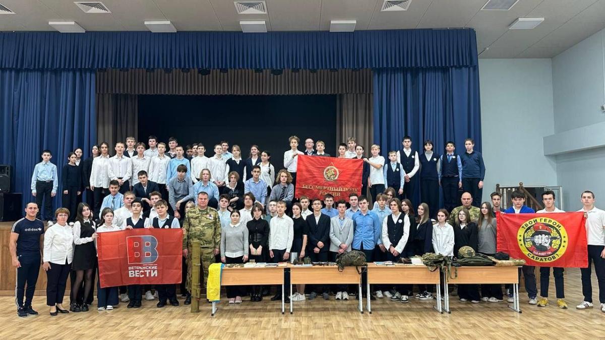 В лицее «Звезда» города Саратова состоялся «Урок мужества», который провёли руководитель исполкома регионального отделения Бессмертного полка России в Саратовской области, казак Волжского казачьего войска, участник специальной военной операции Андрей Бердников и волонтер ассоциации «Твои герои, Саратов» Дмитрий Молоков.