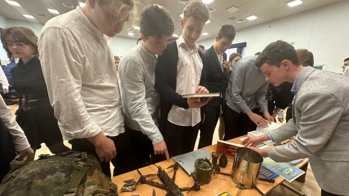 Ребята задавали вопросы, с интересом рассматривали украинские трофеи, привезенные гостями. Встреча закончилась общим фото на память.